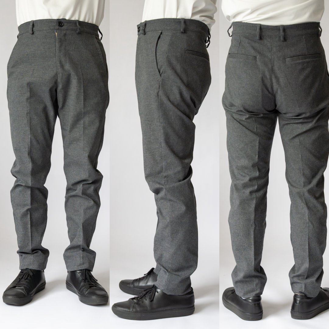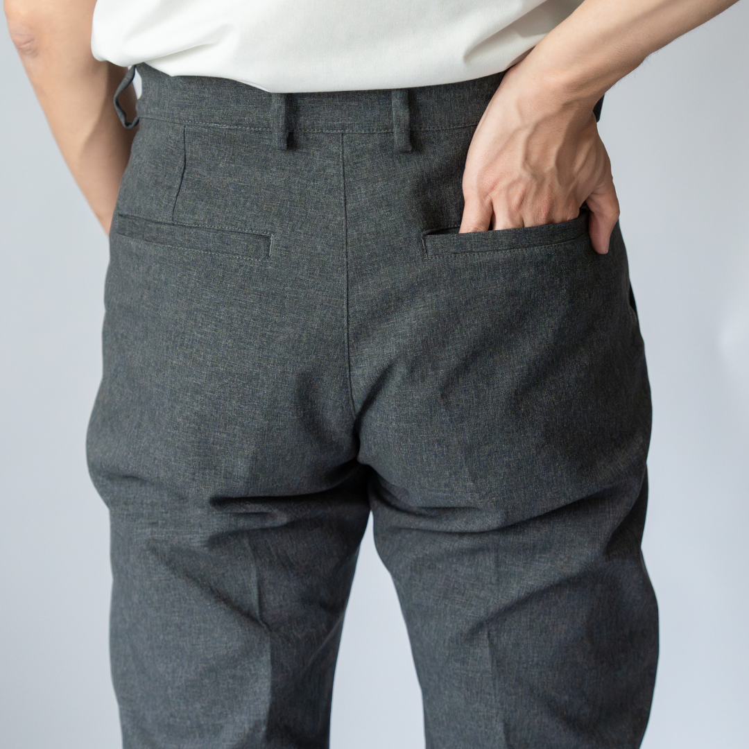 ワークパンツのようにどんなシチュエーションでも動きやすい素材と、スラックスのフォーマルなデザインを融合したのがこの「キタキテスラックス」です。