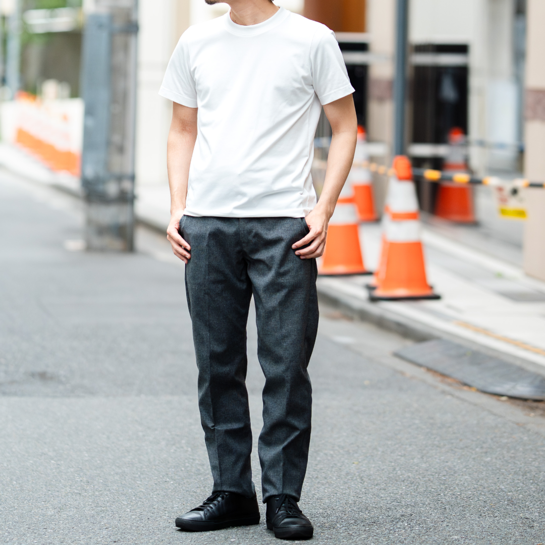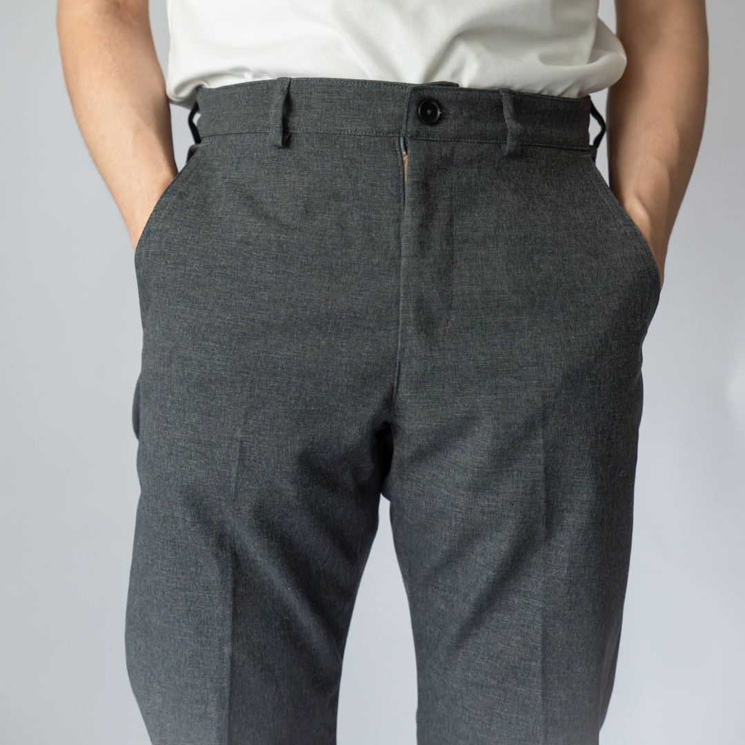 こんなことを感じたことのある方におすすめのパンツが、この着た着て素材のスラックスパンツです。