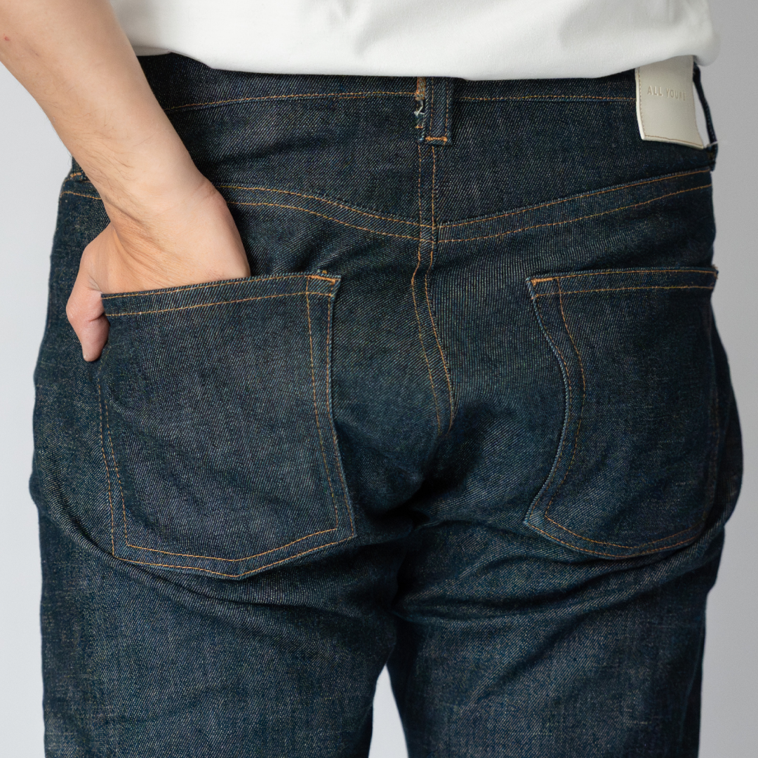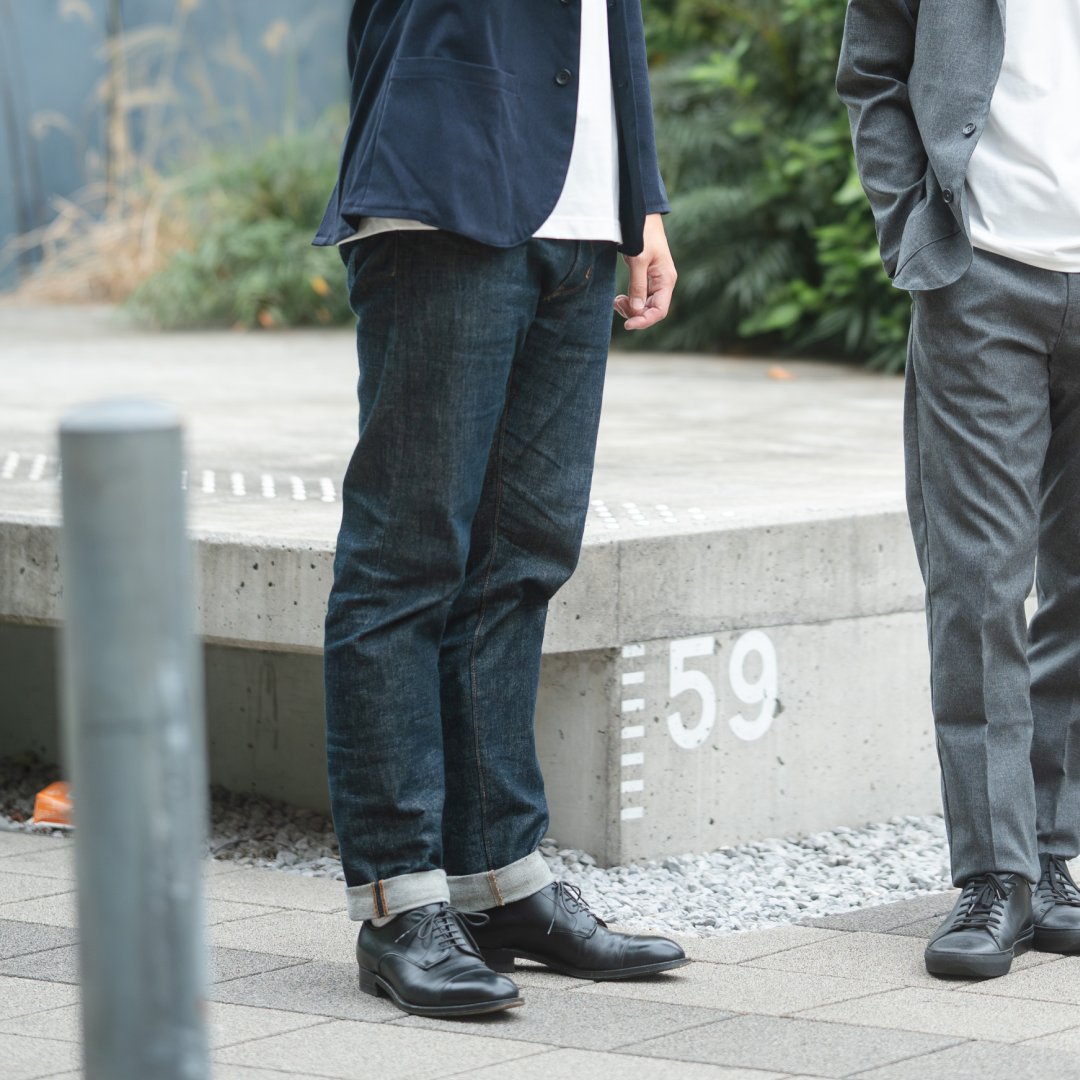 王道の5pktデザインは日常に馴染み、どんな服装にも、どんなシチュエーションでもご着用いただけます。シルエットも普通のストレートから少しだけ裾口を絞っている設計となっており、ダボダボもせず、スニーカーでも革靴でも合わせていただけます。