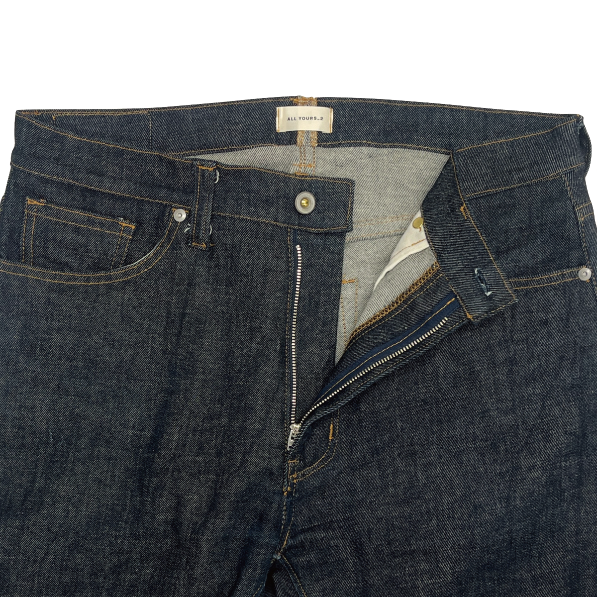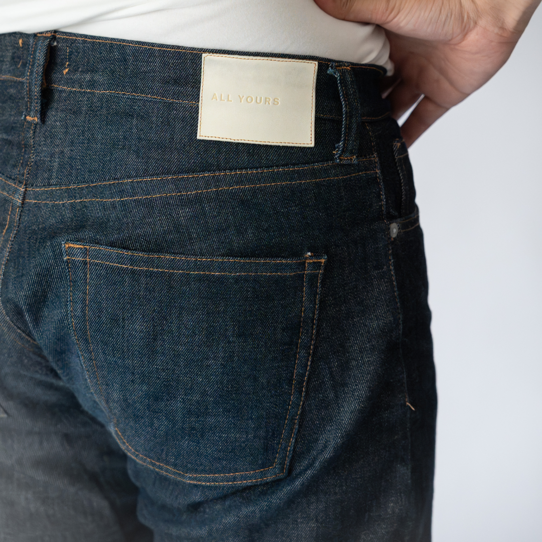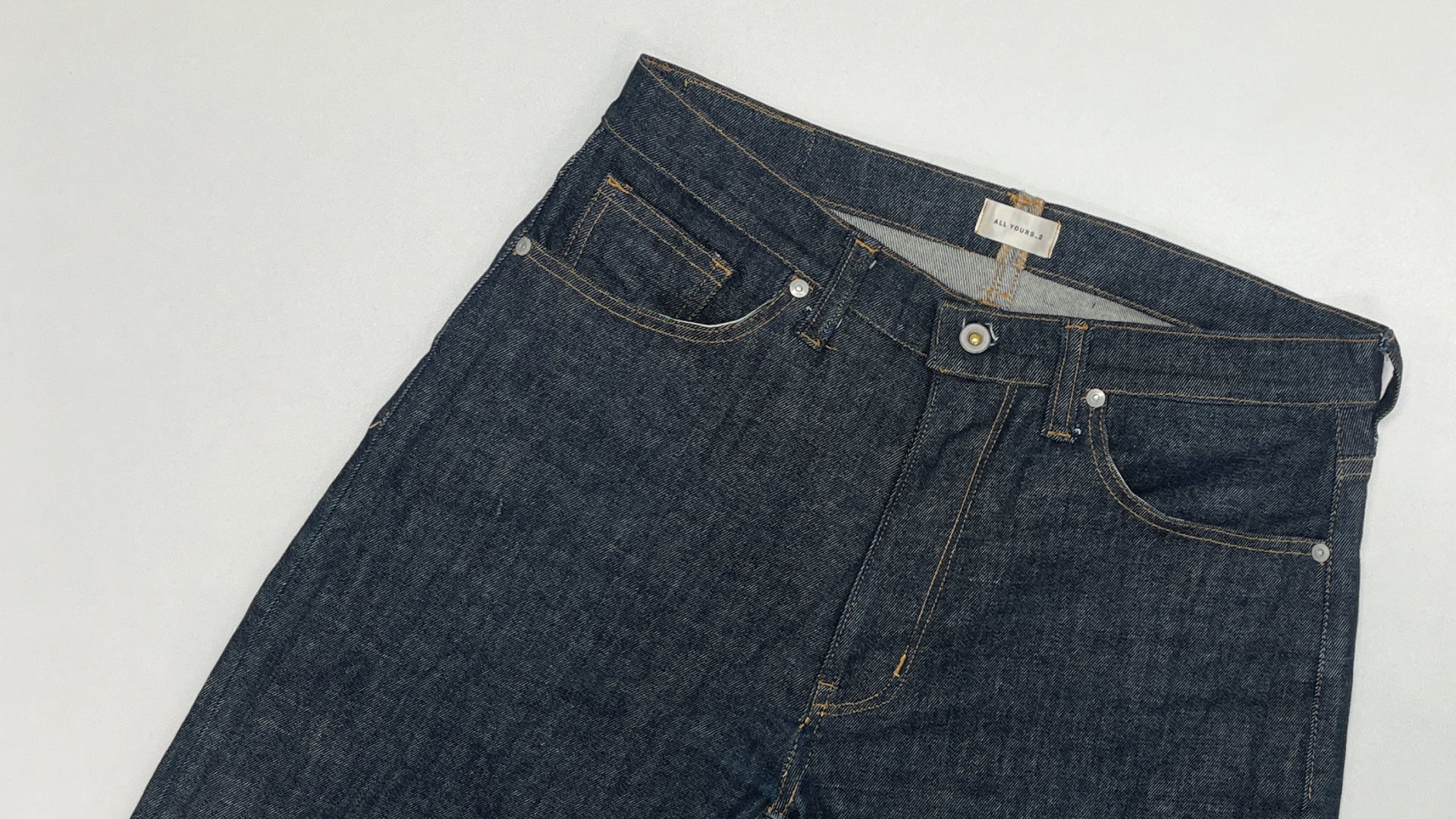 とても伸びる生地なので、製品にしてからデニム用の工業用機械での洗いうとどうしてもねじれてしまったり縮み過ぎてしまったりと問題が多かったため、生地で先に洗いをかけた状態で製品に縫い上げることで、見た目もクリーンになり、シルエットもさらに引き締まりました。