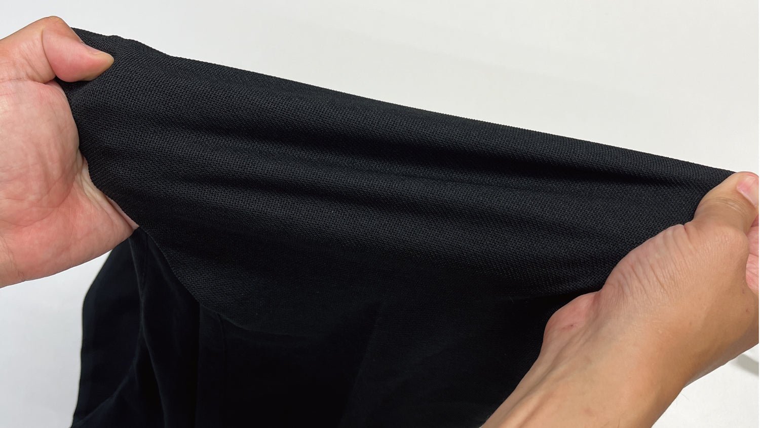 ポリエステルの伸縮性はもちろん、アミード2.0はTシャツと同じ「編み物(ニット)」なので適度なストレッチを編み方で実現しています。