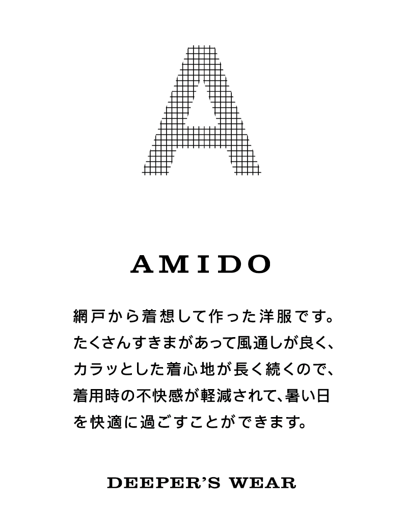 リネンのような自然な風合いで、しっかりしている様に見えるのに過去のアミードよりも風が通り抜ける、真夏に着てほしい新しい素材が完成しました。