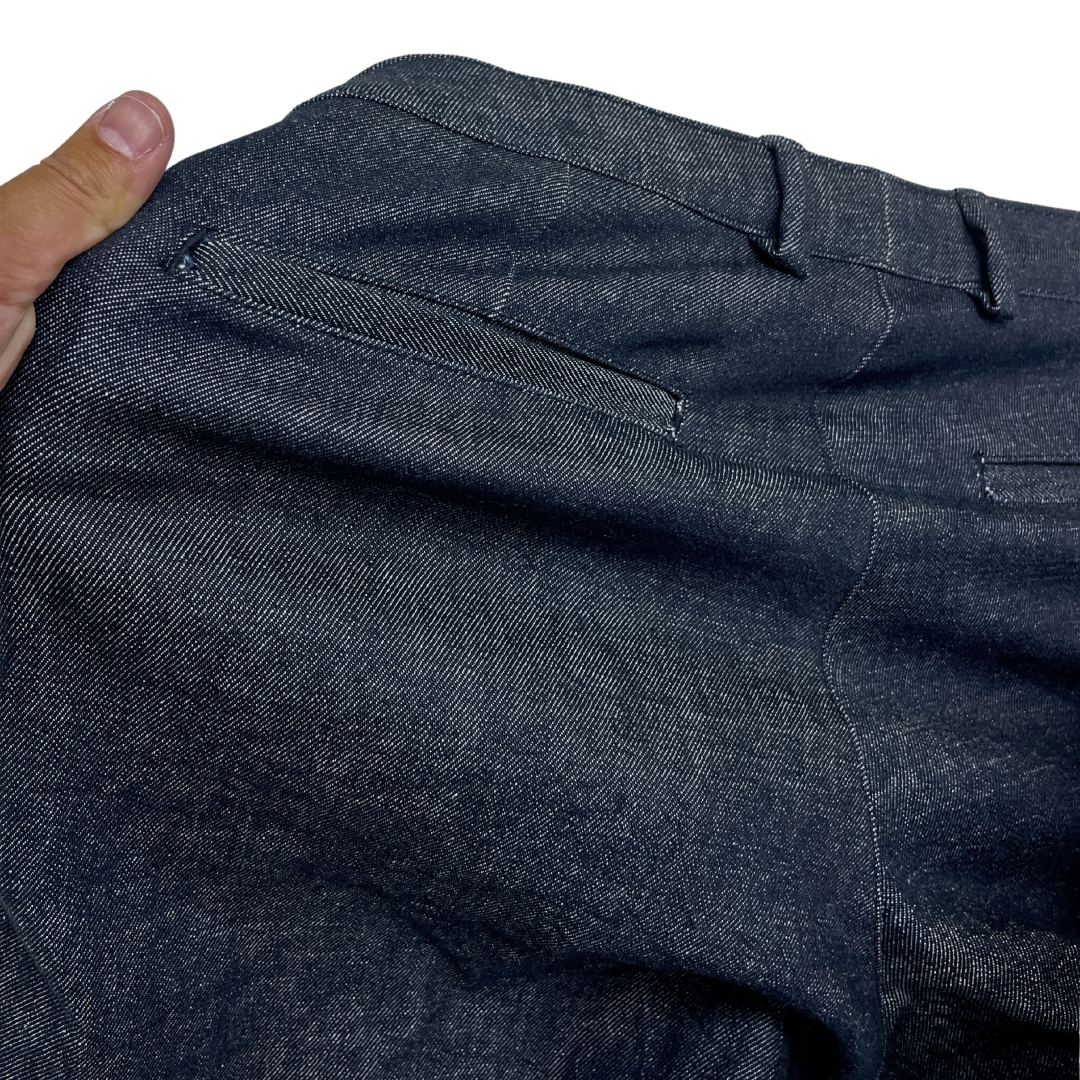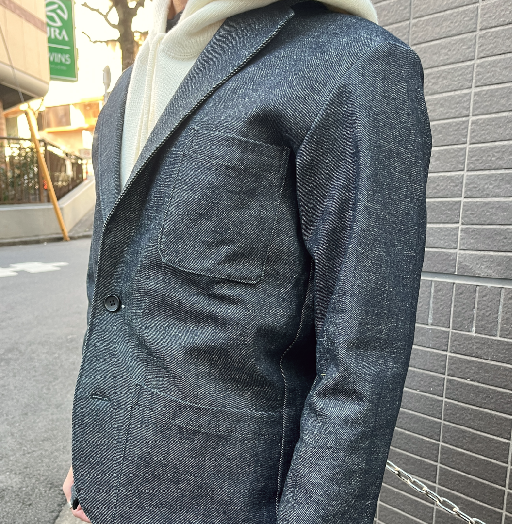 今回はデニム素材のため、すこしカジュアルな印象に仕上がりましたが、ステッチの色も全てデニム素材と同色で統一したため、カジュアルすぎず、お仕事からお休みの日まで週7でご着用いただけます。
